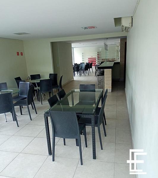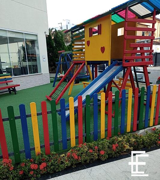 Prédio possui área de lazer com Plauground, salão de festa gourmet e churrasqueira.